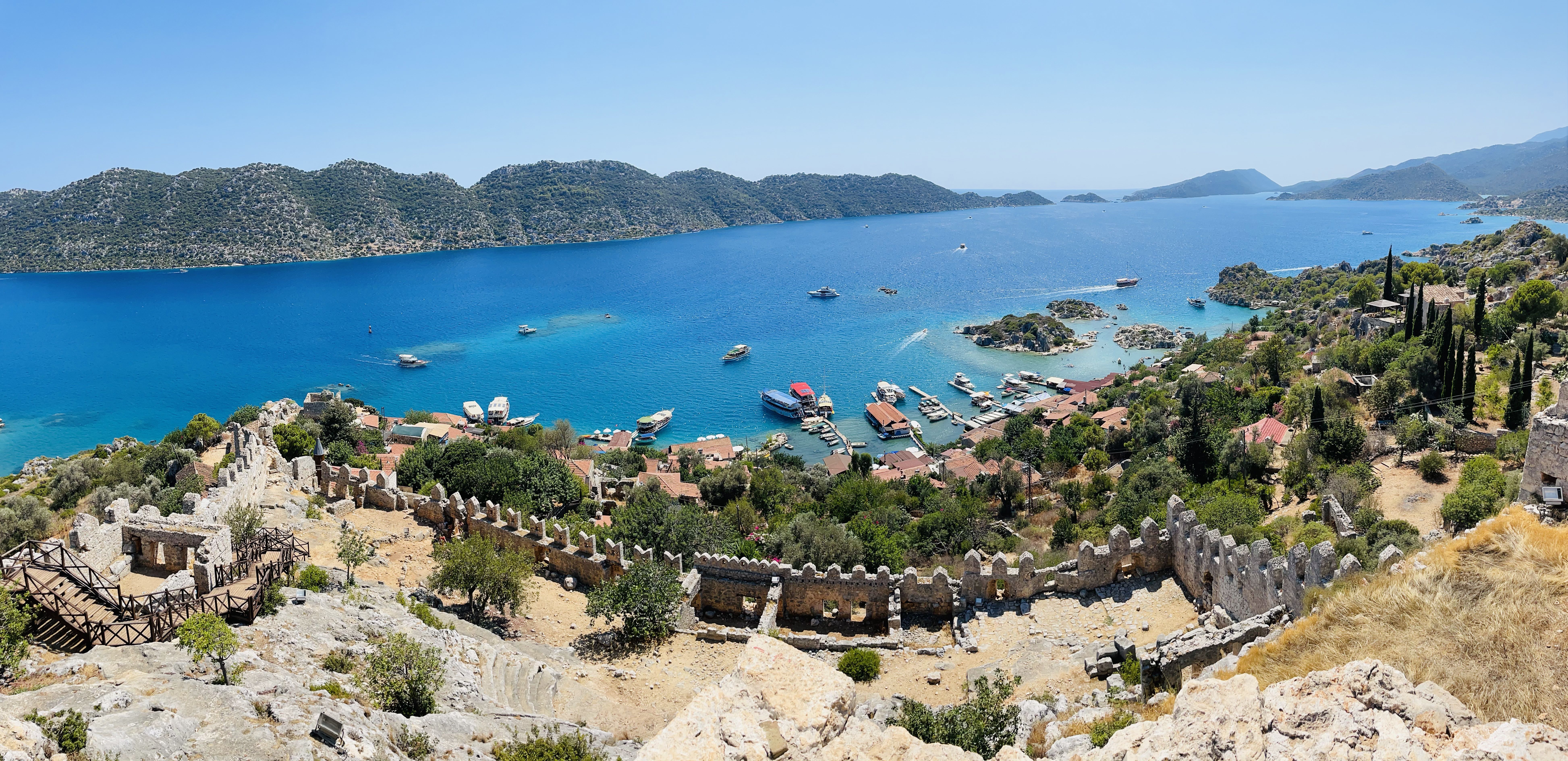 Kalkan is Turkey’s best-kept secret – nestling as she does on the foothills of the rugged Toros Mountains. Close your eyes, imagine what a Mediterranean harbour should look like: White Villas covered in Bougainvillaea, winding cobbled streets, roof terrace and harbourside restaurants and bars – that’s Kalkan.